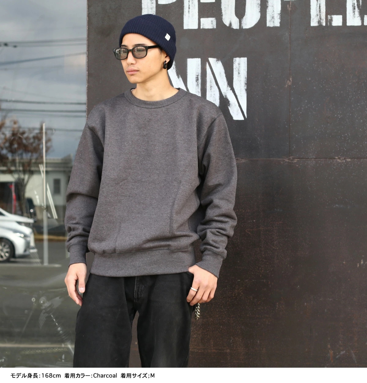 ストリートスタイルにもはまるコーディネートのCHARCOAL着用例。