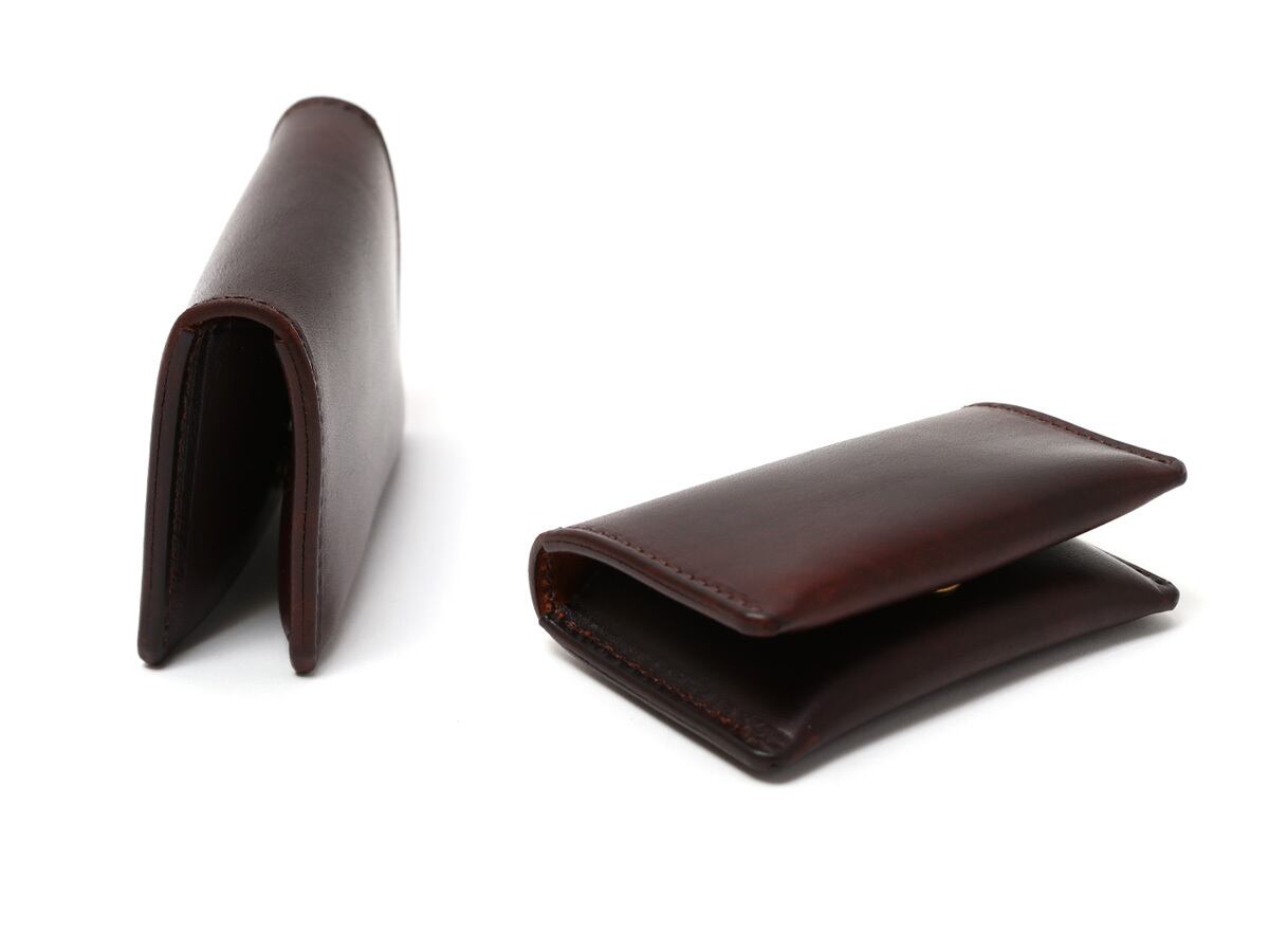 同ブランドの定番“Bulge”カードケースの改良版がこちらの“Bulge2”。立体的なカードケースに膨らみを持たせ容量を確保。カードケースとしてはもちろんのこと、紙幣を折って収納する事でミニウォレットとしてもご使用頂けます。