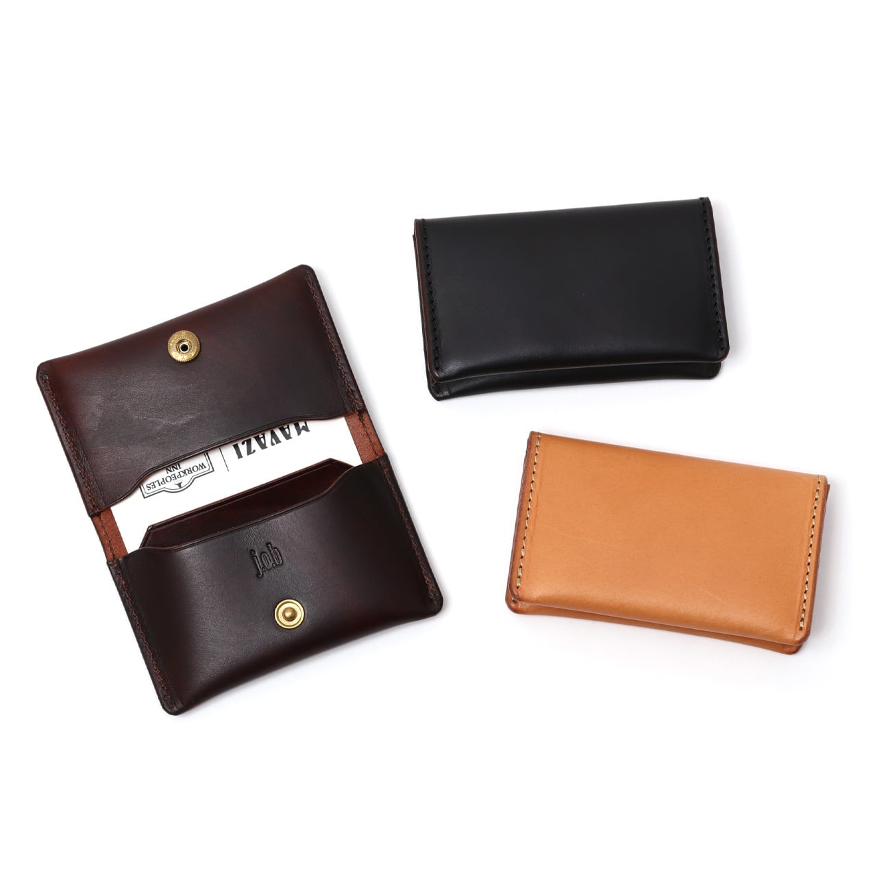 ヴィンテージの再構成、再解釈をテーマに造られるプロダクト。古い製品、その中でも特にUSA製品に強い影響を受け、それらをベースに現代的にアレンジした作風が特徴。タンニンなめしのヌメ革をベースに手染め・独自加工のレザー、ヴィンテージ加工を施した真鍮金具を組み合わせた唯一無二で表情豊かなアイテムを展開。 ブランド名であるj.o.bそれぞれの文字にはJoint・Old・Birthの意味があり、新しく生み出されるものと古い物とを繋ぎ合わせるという意味が込められています。