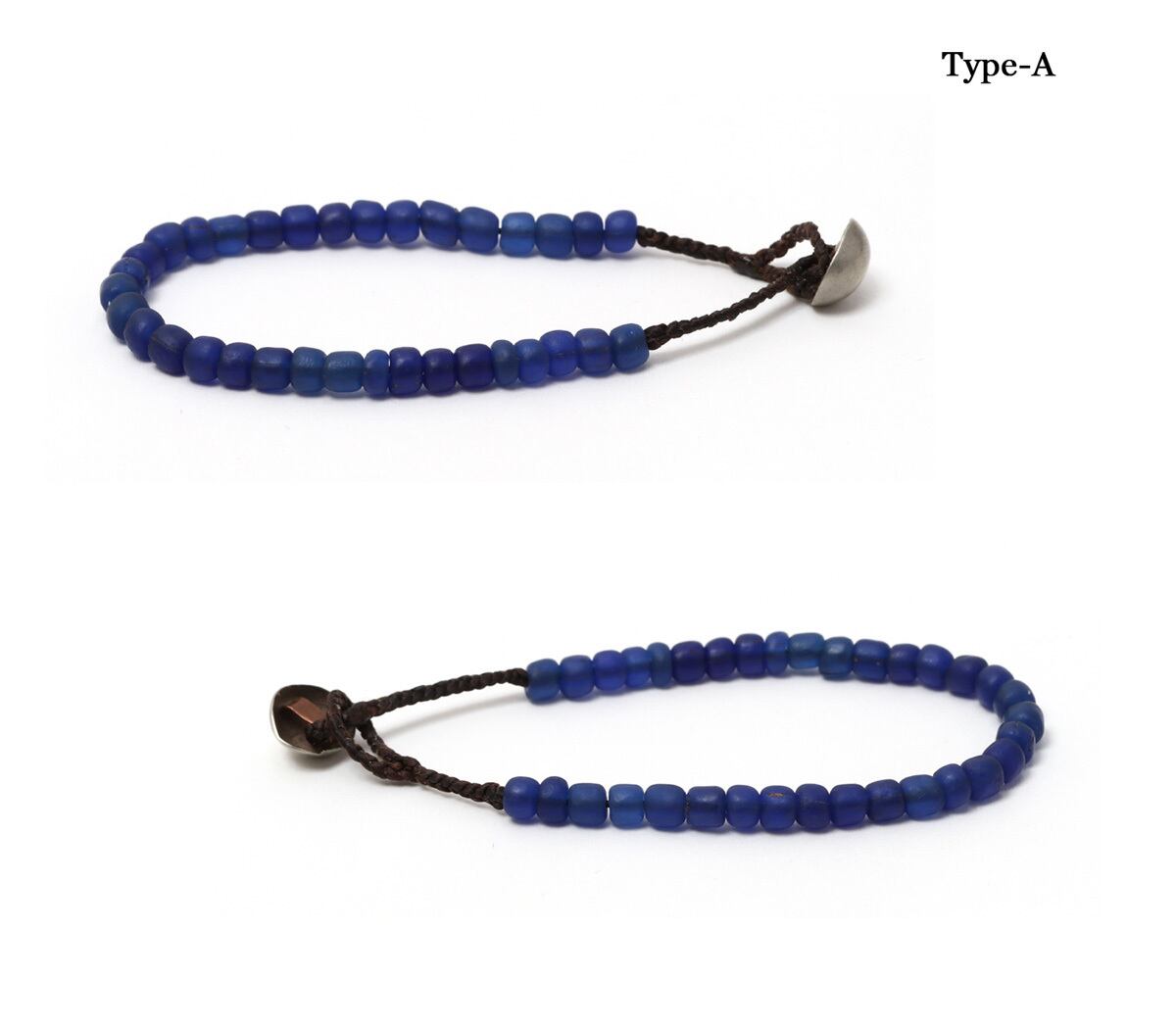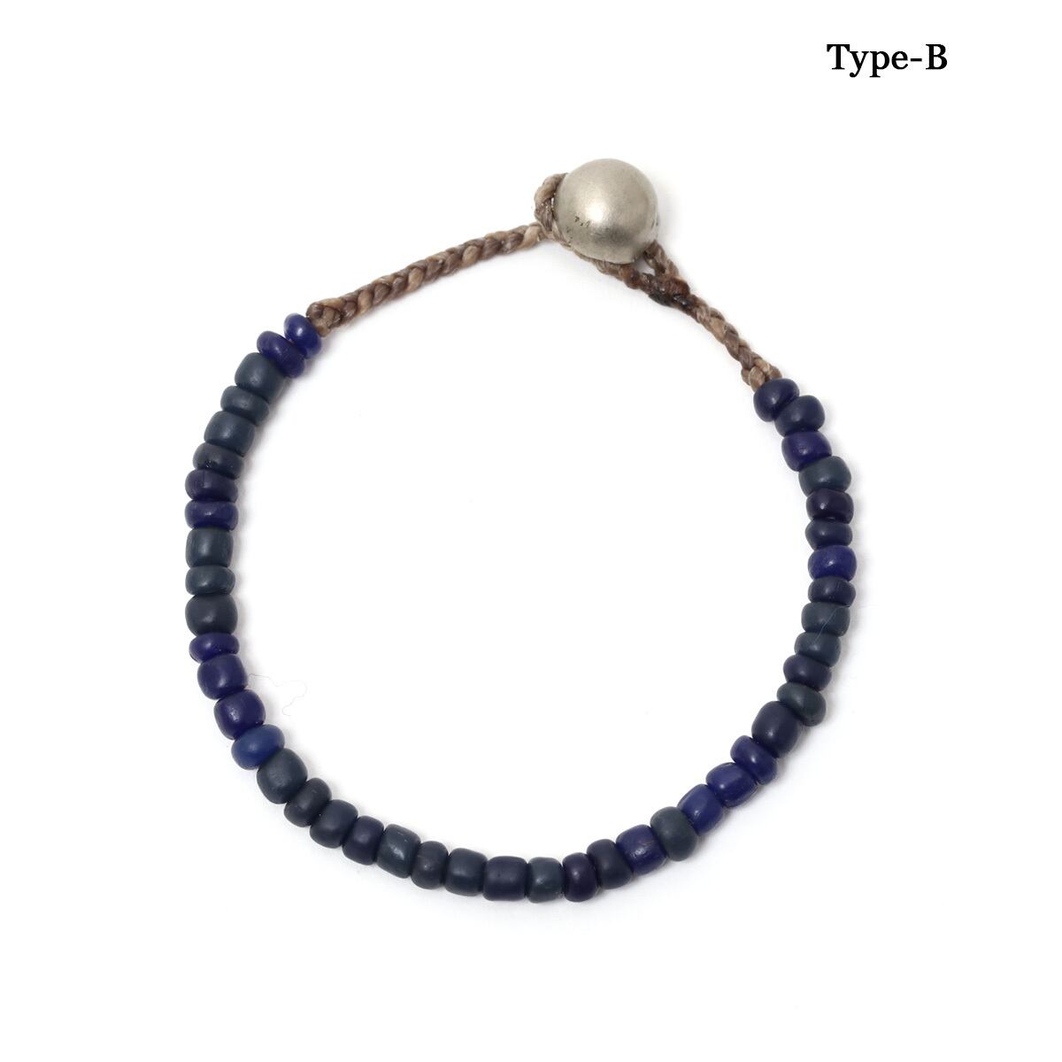 BHADUR バハドゥール ネイビーアンティークガラスビーズ ブレスレット #b115 日本製 Navy
