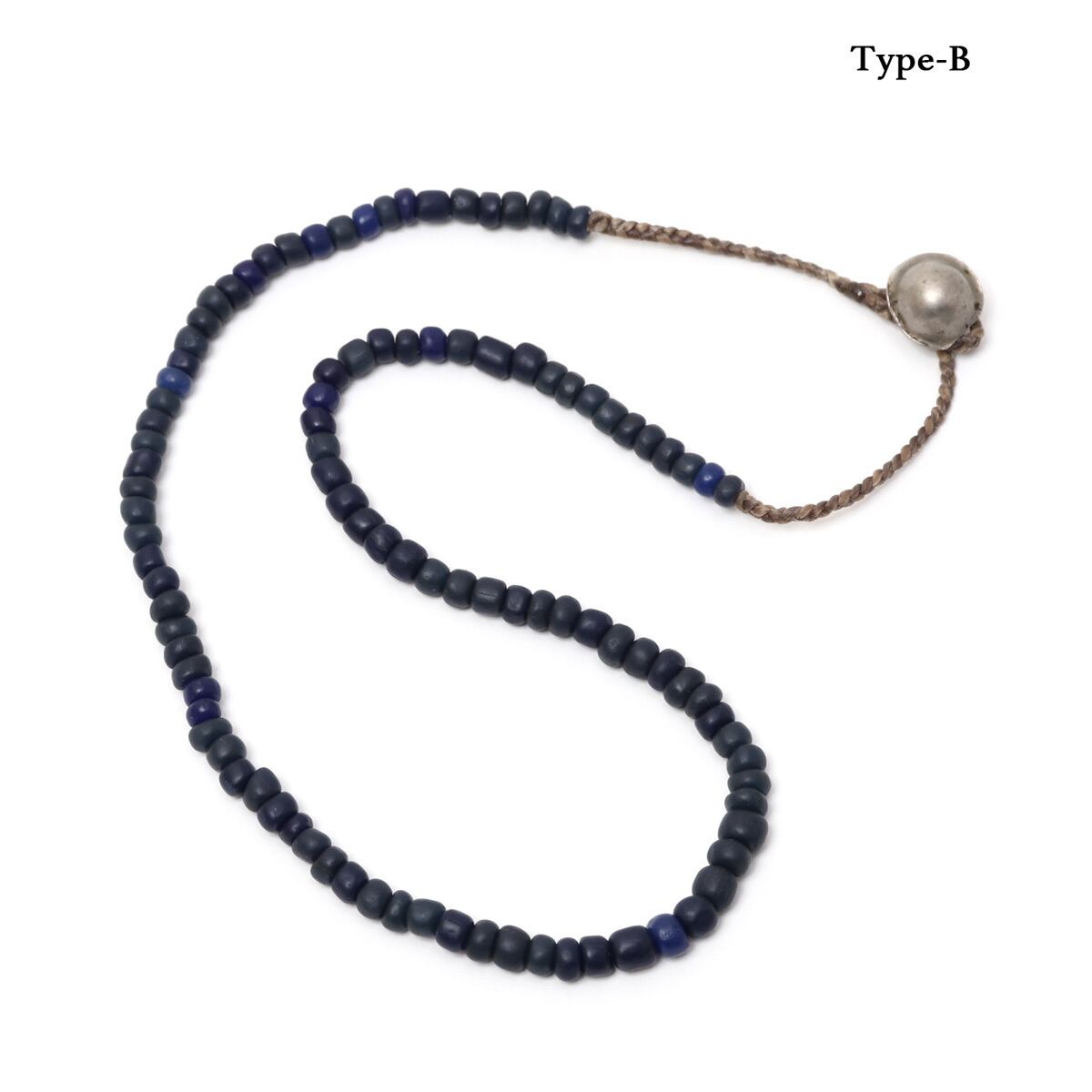 ■ANTIQUE NAVY GLASS BEADS NECKLACE #ABN085