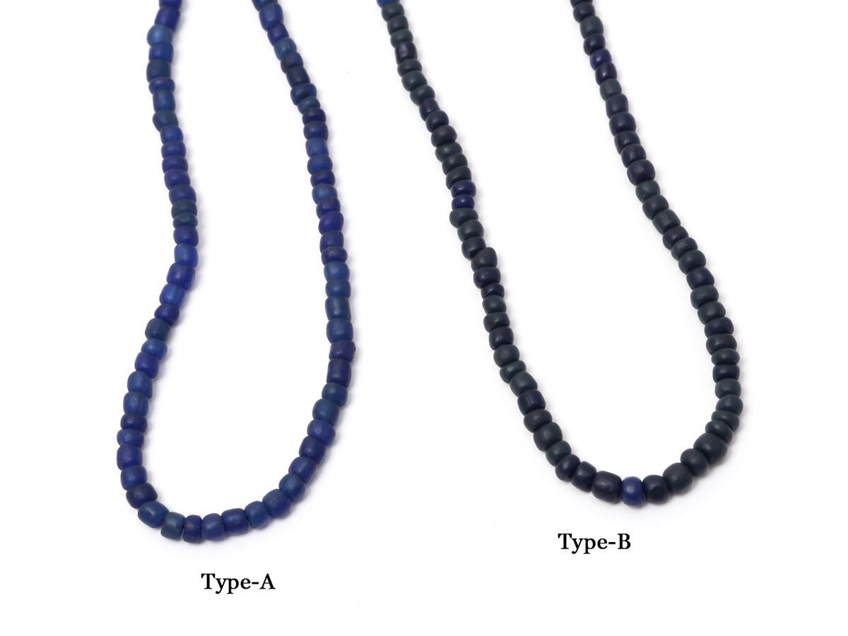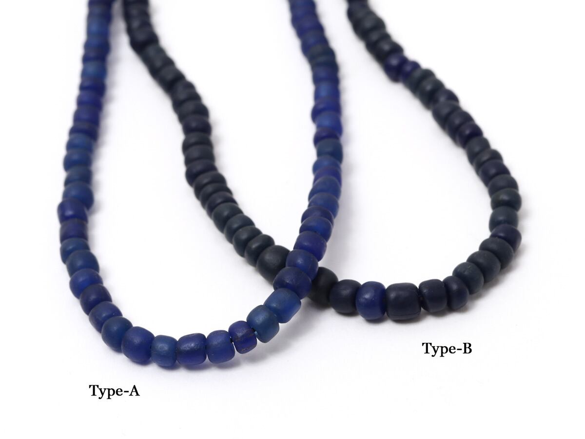 マバジ取り扱いのアンティークビーズの中では中粒で使い勝手の良いサイズ感です。1粒1粒同じ様に見えますが目を凝らして見ると不規則で個々の表情が豊なビーズが連なった素朴な風合いが魅力の1本です。