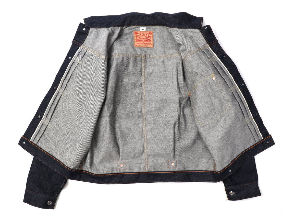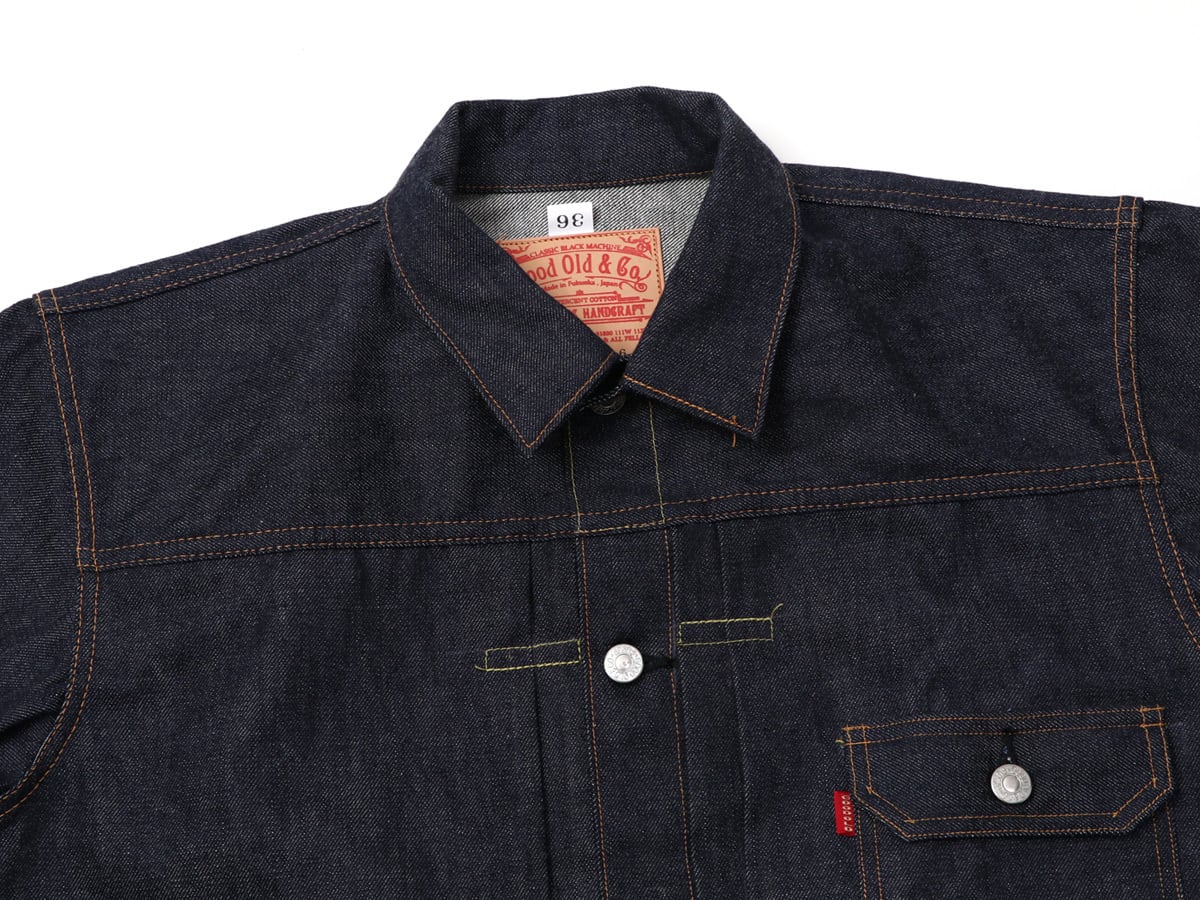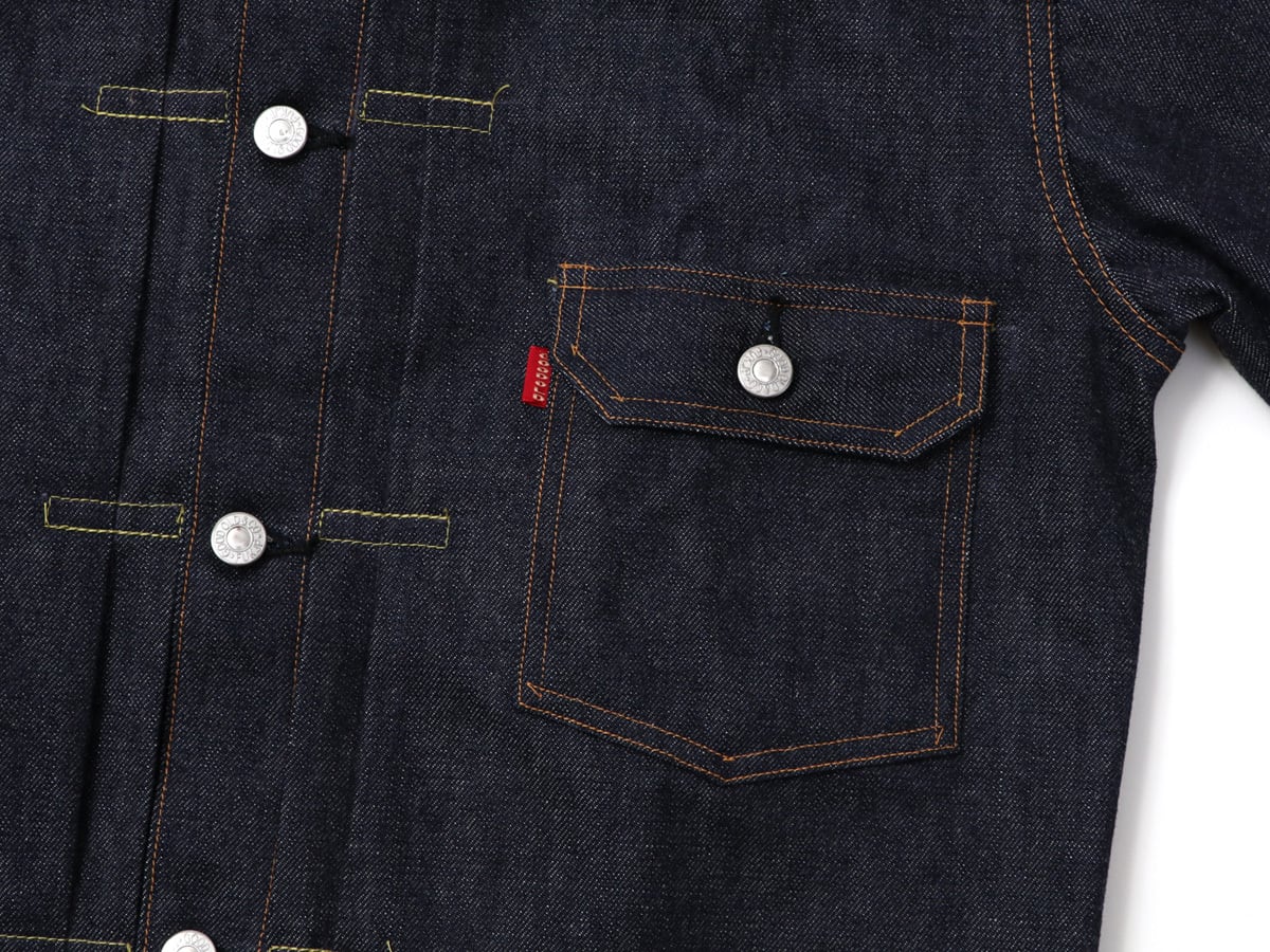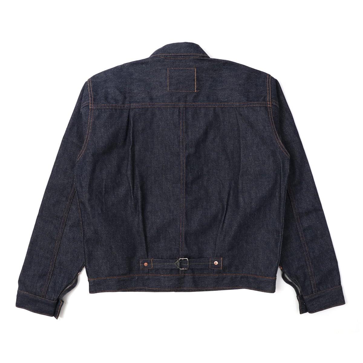 『生地は織り上げたままの生機で、毛焼き、防縮加工は一切なしで、大戦モデルオリジナルの生地を分析して織り上げたものです。ボタンは全て鉄で、リベットも鉄に銅メッキ、シンチバックに関しては、当時のオリジナルのリプロダクト品です。ボタンの裏のツープロングもオリジナルを見るかのような鍋底型になっております。糸も全てカタン綿糸。リベットのブランドロゴは1つ1つ両面を手打ち。縫いあげたミシンも当時使われていた名機種でユニオンシンガーにこだわっています。あとは、当時の色落ちをお客様自身で作って頂きたいです。』