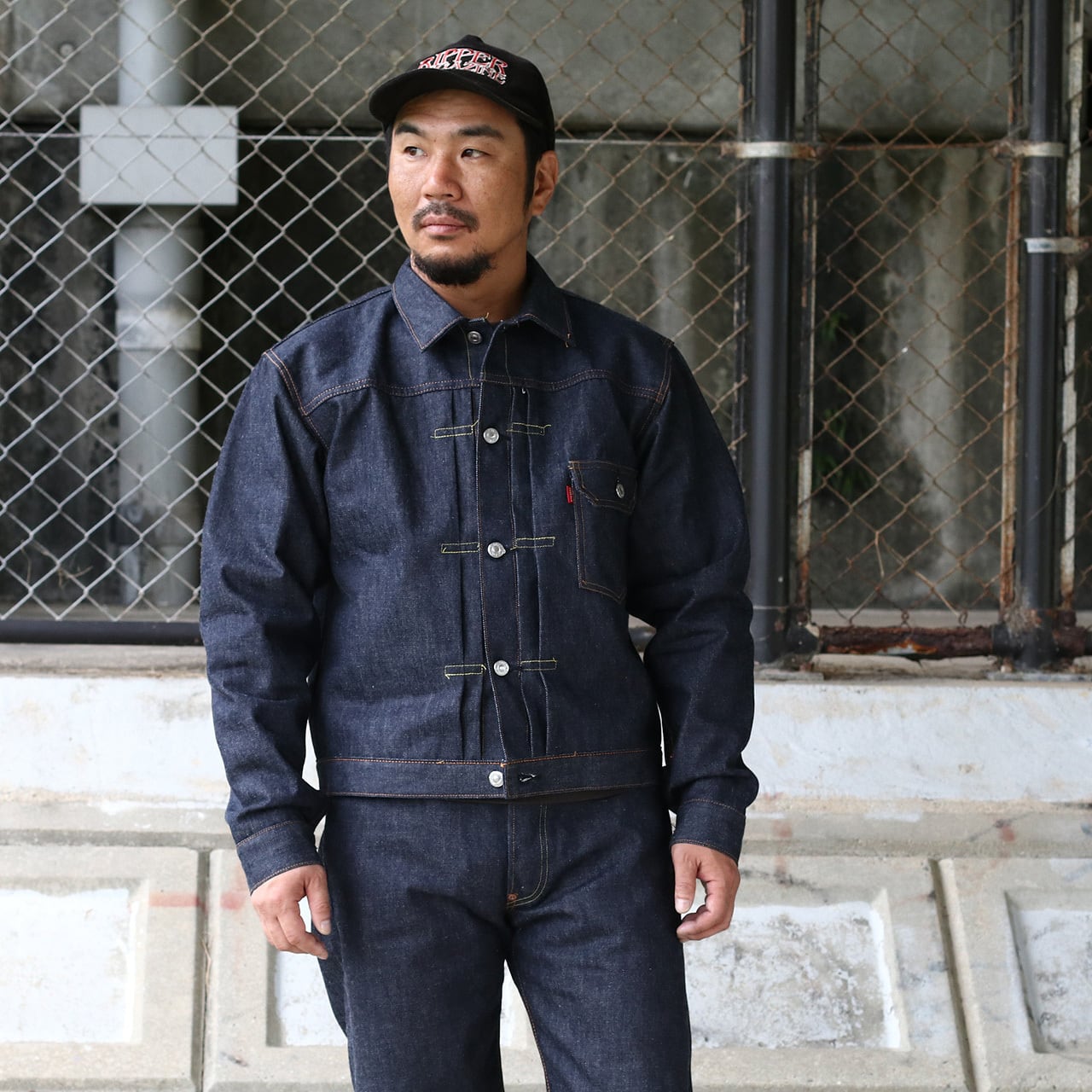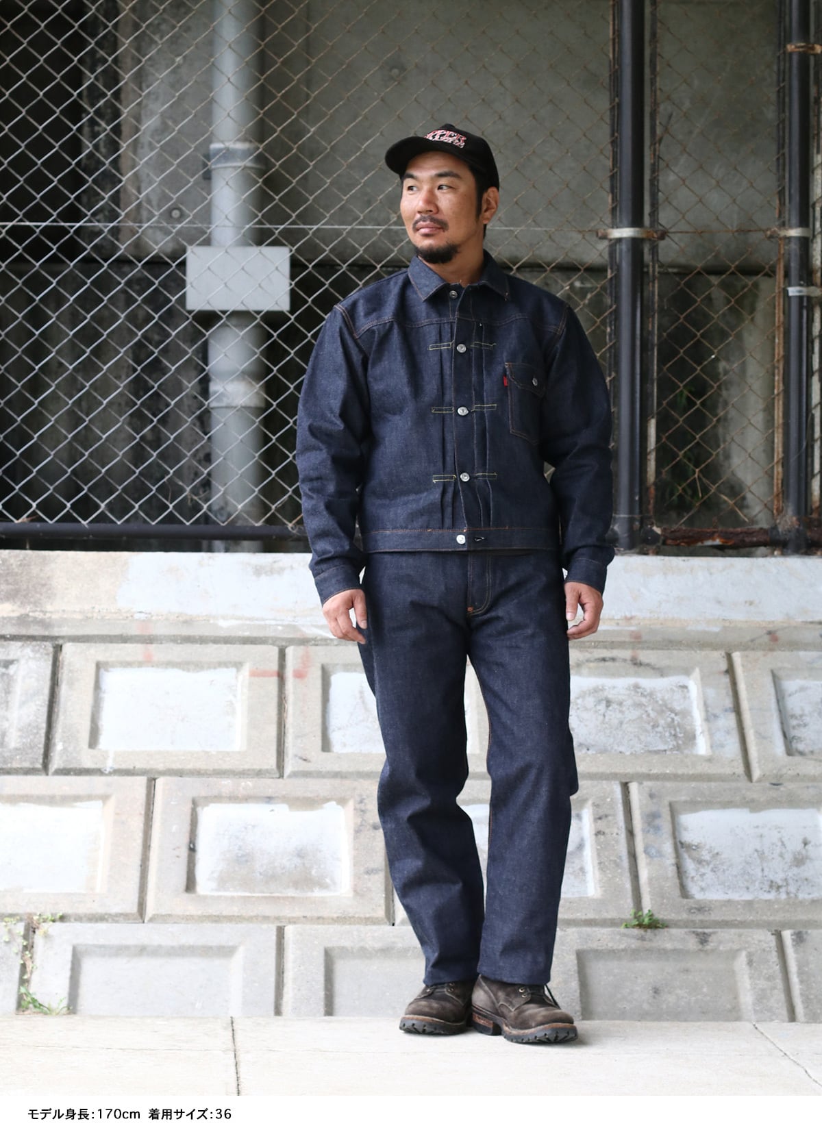 リーバイス 37モデルの完全復刻。岡山産の12.5ozデニムをSINGERやUNIONSPECIALといったビンテージミシンでソーイング。ボタンやリベット(隠しリベットを含む)はアイアン素材。ステッチやシームは全て綿糸。サイズに関係なく背割りT-Back Style。妥協なき拘りと技術が盛り込まれた素晴らしいい仕上がりの1着です。