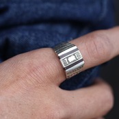 伝統的な民族柄を全て手作業で彫り込んだ作品。トゥワレグ族の特徴的なエボニーウッドを盛り込んだカレッジリングにも似たデザインが特徴。トゥアレグ族のジュエリーの模様には、家紋、戦への勝利のお守り、砂漠での道に迷わないための魔除け、交易の安全を願うお守りといった意味があります。贈り物としても最適なアイテムの1つです。