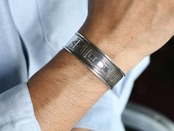 伝統的な民族柄を全て手作業で彫り込んだ作品。幅が23mmほどあるセミワイドタイプのバングルです。トゥアレグ族のジュエリーの模様には、家紋、戦への勝利のお守り、砂漠での道に迷わないための魔除け、交易の安全を願うお守りといった意味があります。シンプルなデザインで年齢や性別を問わずお楽しみ頂けるアイテムです。