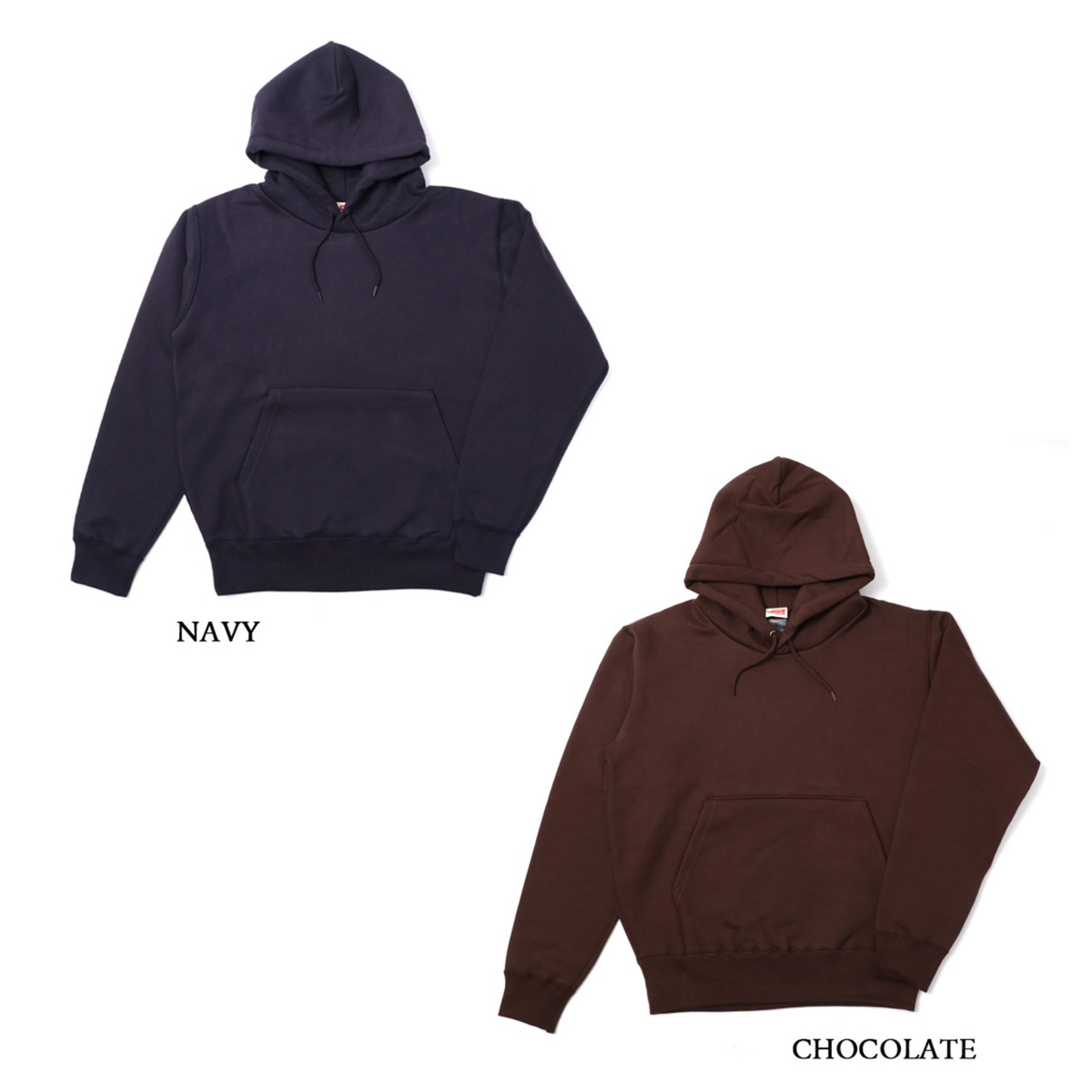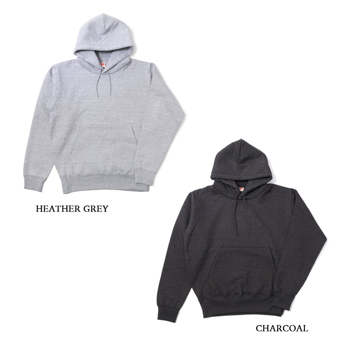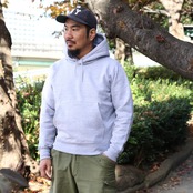15.6ozのヘビーウェイトプルオーバーパーカーです。ポリ混で裏起毛のパーカーは温かくヘビーウェイトでも柔らかく動きやすいです。フードもしっかりしており潰れず、首元もしっかり保護してくれます。フラットシーマ縫製で作られているためしっかりとした凹凸がないデザインです。