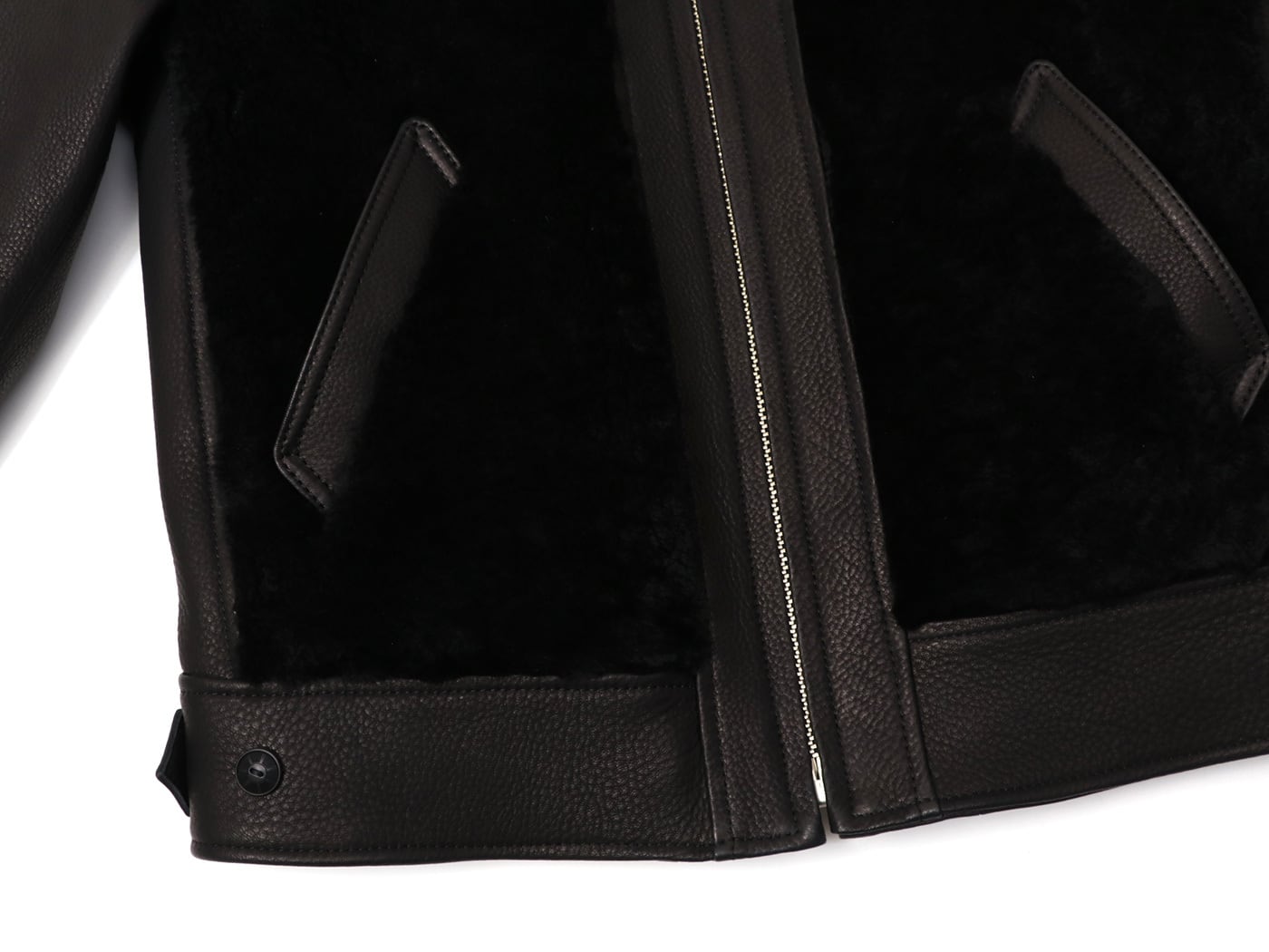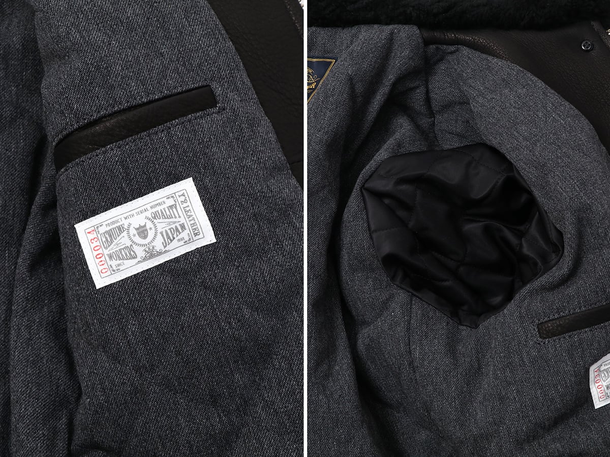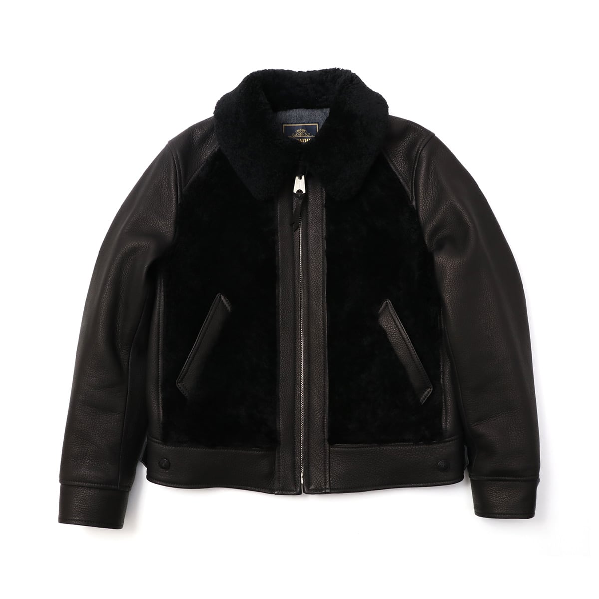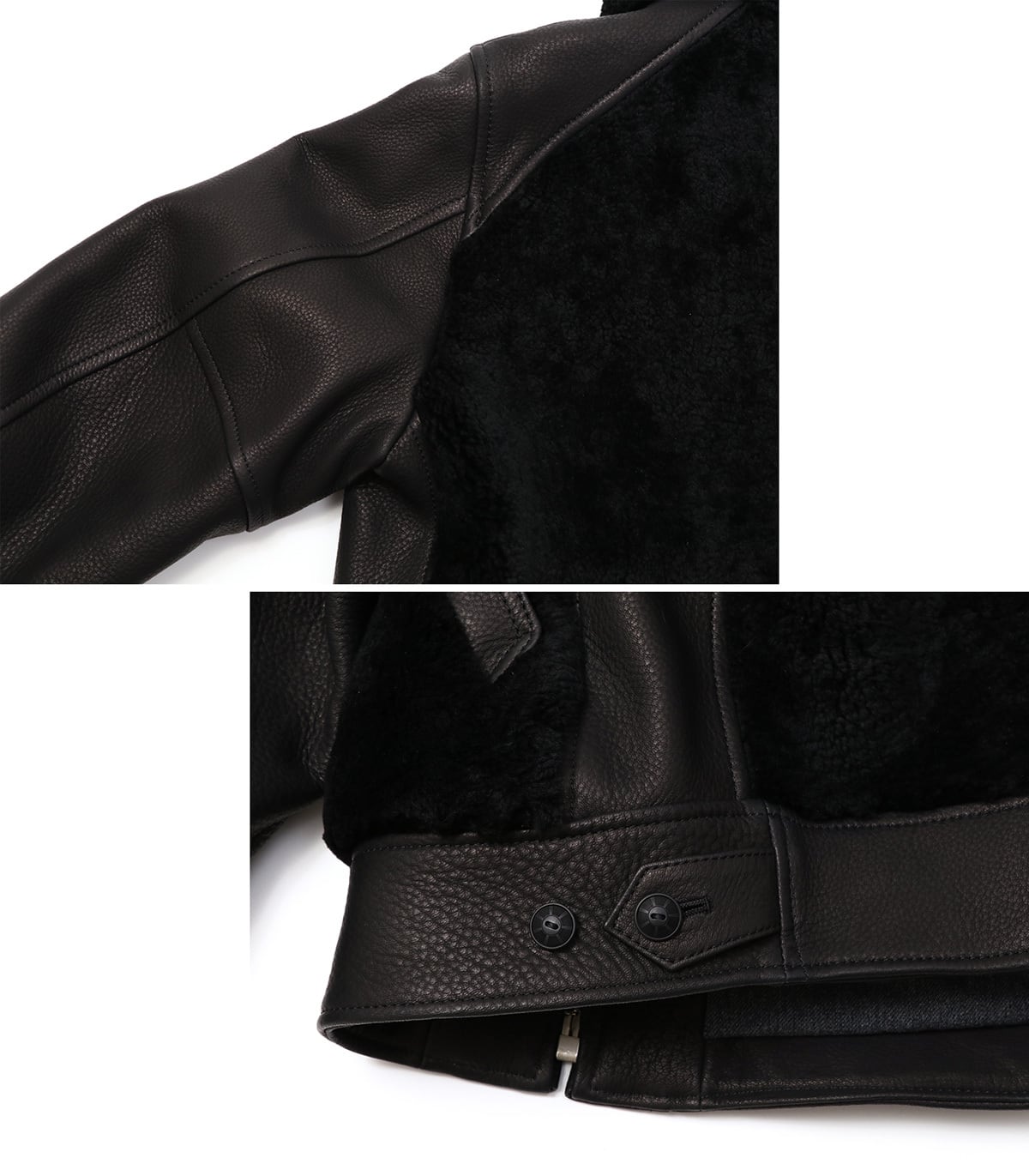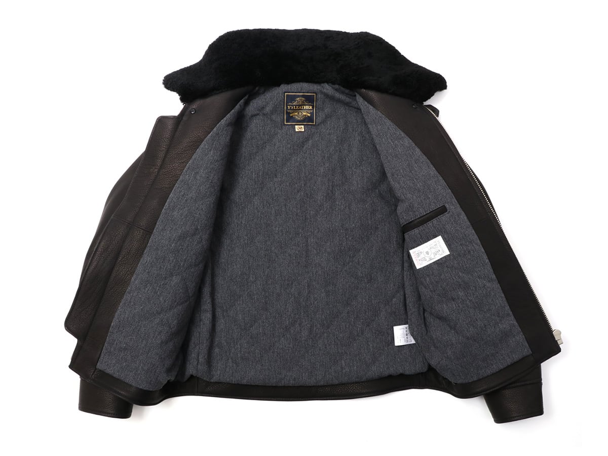 今回生産するグリズリージャケットはディアスキンを使用し、オールブラック仕様で大人な1着に。ライニングにはブラックボディと親和性の高い色味のブリティッシュウールのグレーカラーにキルト加工を施し、袖口の隠しリブやステッチもブラックで統一。ファスナーにはニッケルフィニッシュを採用し、これまでにないシックな佇まいをお楽しみ頂けます。