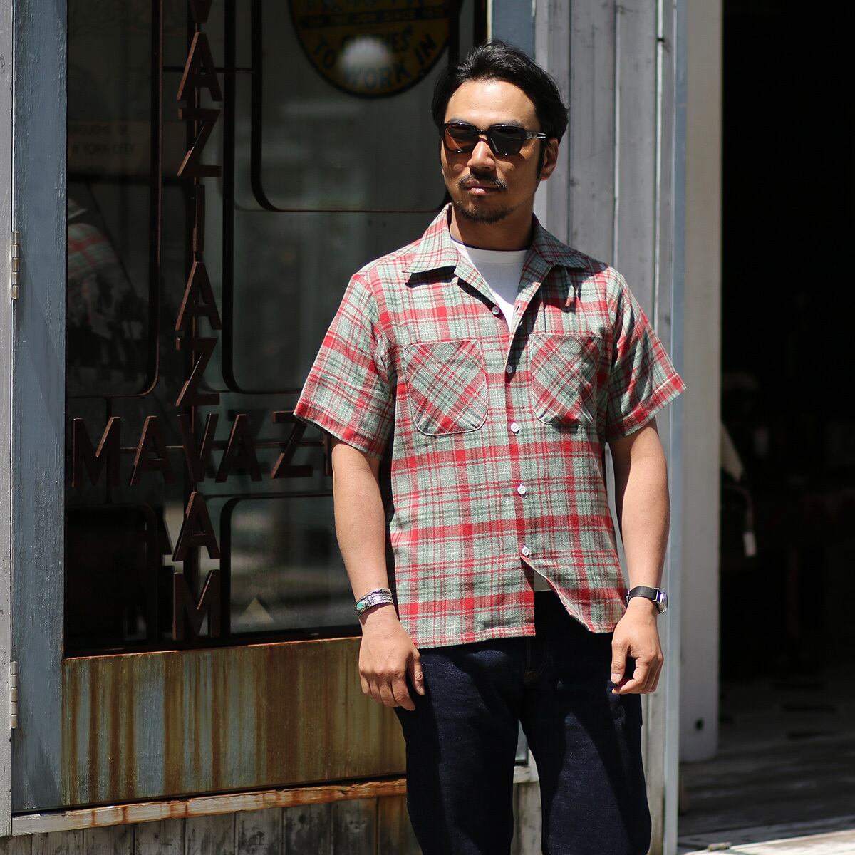 ■60sスタイルオープンカラー半袖シャツ ライトウエイトフランネル