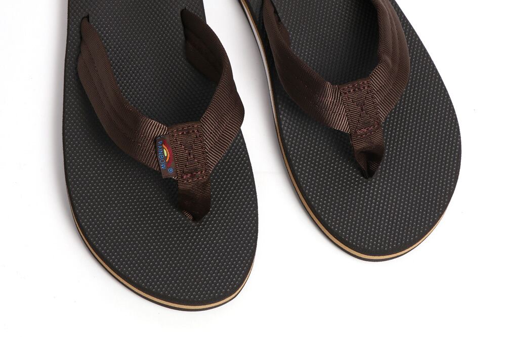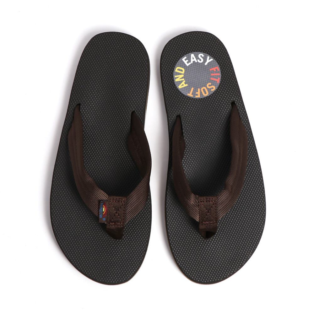 1974年、カリフォルニア州サクラメンテに誕生し、サーファーをはじめとするビーチライフを楽しむ人々に 絶大な支持を受けているエコサンダルメーカー・RAINBOW SANDALS(レインボーサンダル)。RAINBOW SANDALSのクラシックシングルレイヤーは履き込むほどに味わい深くなり、自分の足にフィットします。鼻緒の部分は強度のあるナイロン素材で簡単にはちぎれない所がエコサンダルたる由縁。ビーチではこのクラシックが一番最適です。