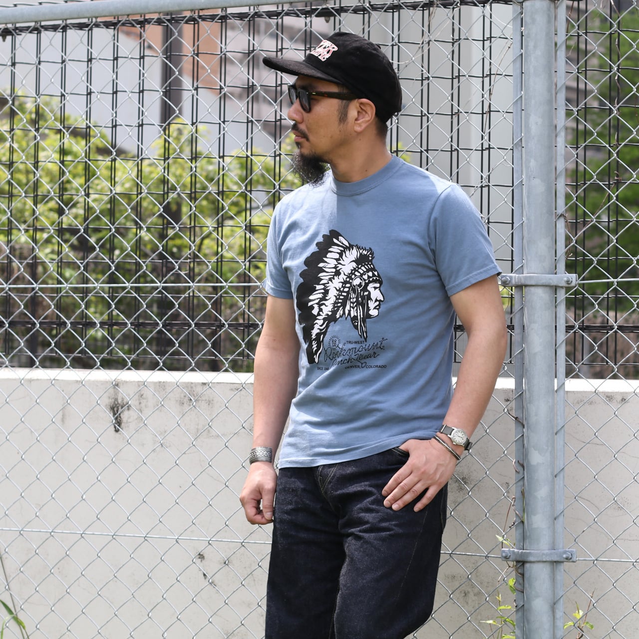 同ブランドの本拠地でもある米国デンバーでデザインからプリントまで一貫し製作されたインディアンチーフ柄が魅力のプリントTシャツです。